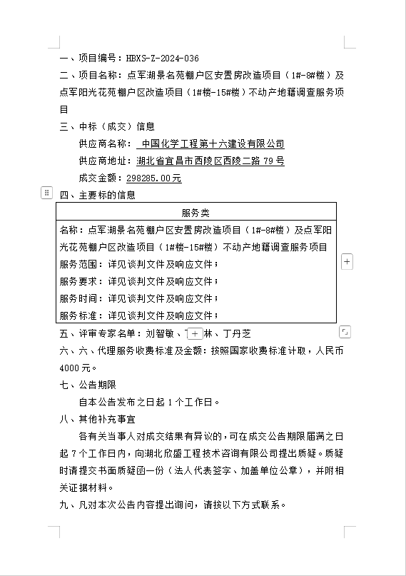 點(diǎn)軍湖景名苑棚戶區(qū)安置房改造項(xiàng)目(1#-8#樓)及點(diǎn)軍陽光花苑棚戶區(qū)改造項(xiàng)目(1#樓-15#樓)不動(dòng)產(chǎn)地籍調(diào)查服務(wù)項(xiàng)目成交公告